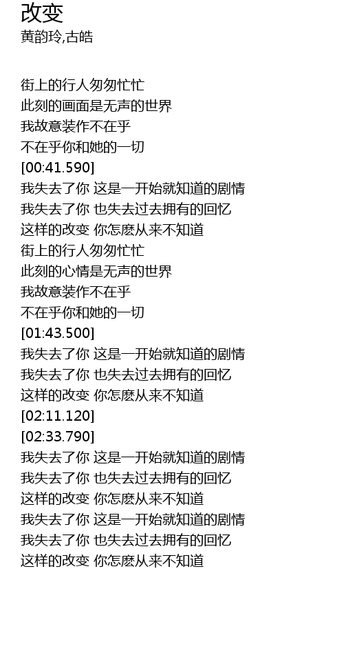 | [02:51.770] | 这样的改变 你怎麽从来不知道 |