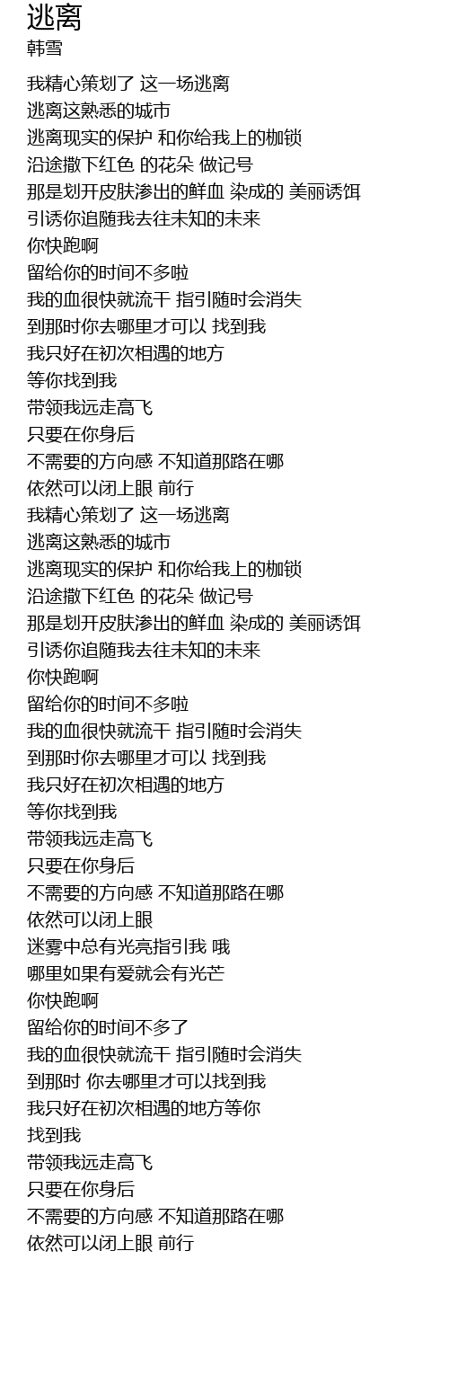| [00:50.55] | 我精心策划了 这一场逃离 |