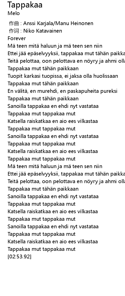 | [01:33.21] | Tappakaa mut tappakaa mut |