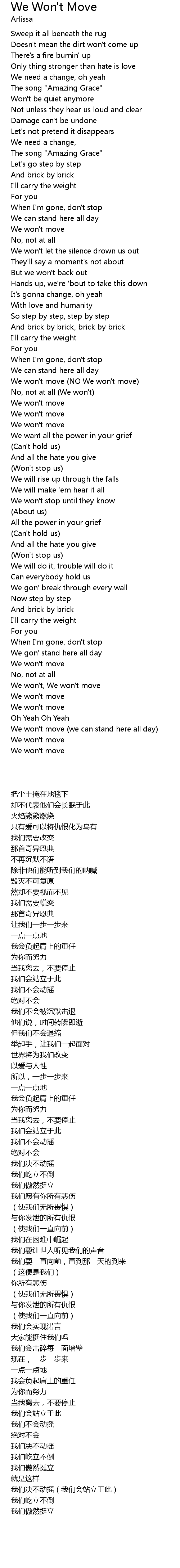 We won't, We won't move |