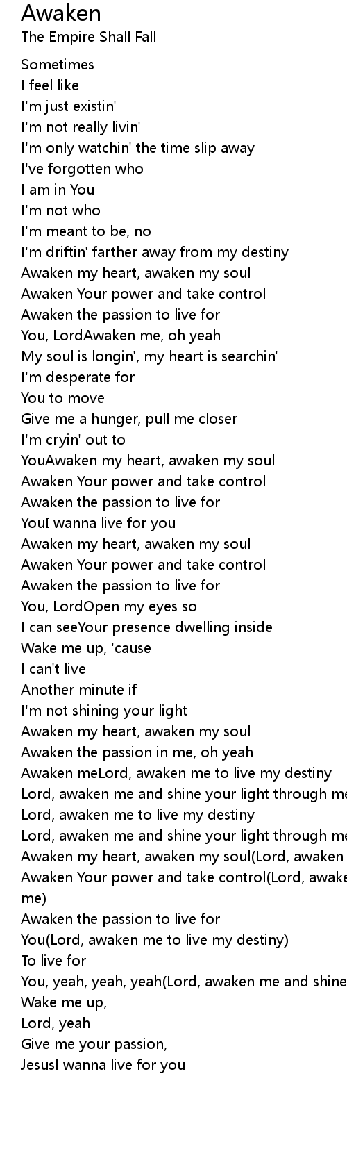 YouAwaken my heart, awaken my soul |