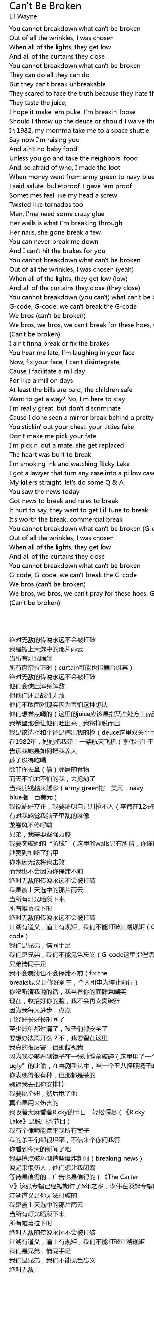 (Can't be broken) |