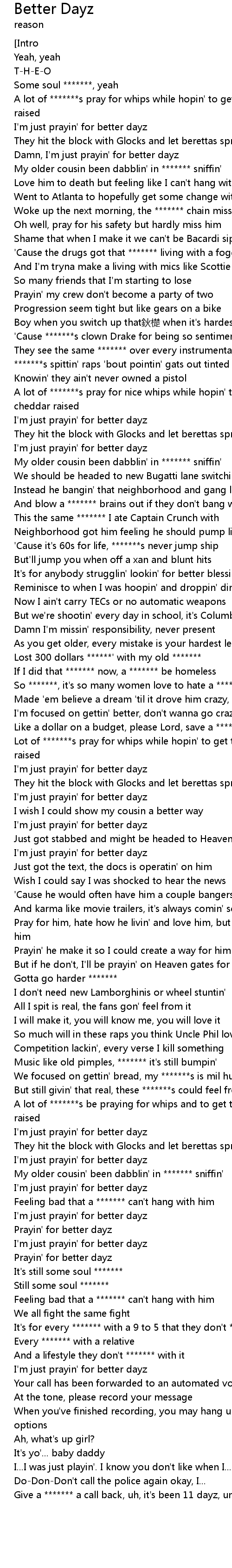 | [00:18.508] | Damn, I'm just prayin' for better dayz |