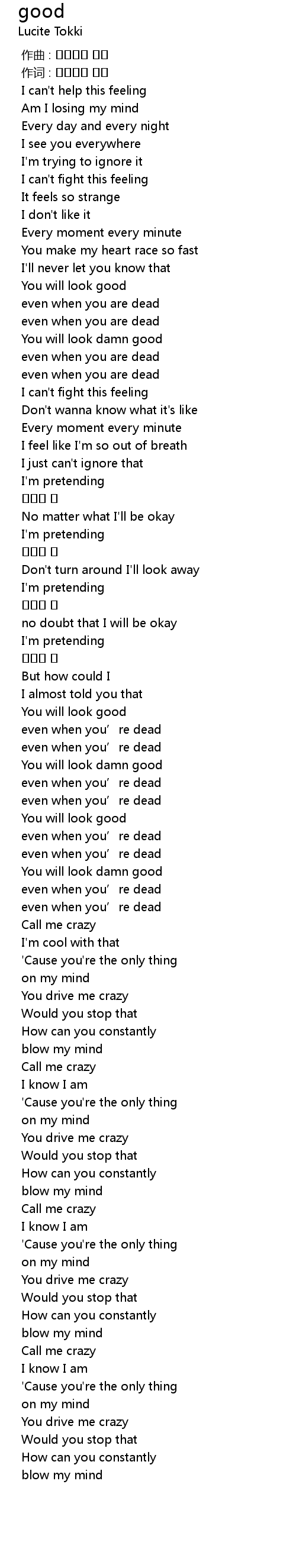 | [04:30.412] | You drive me crazy |