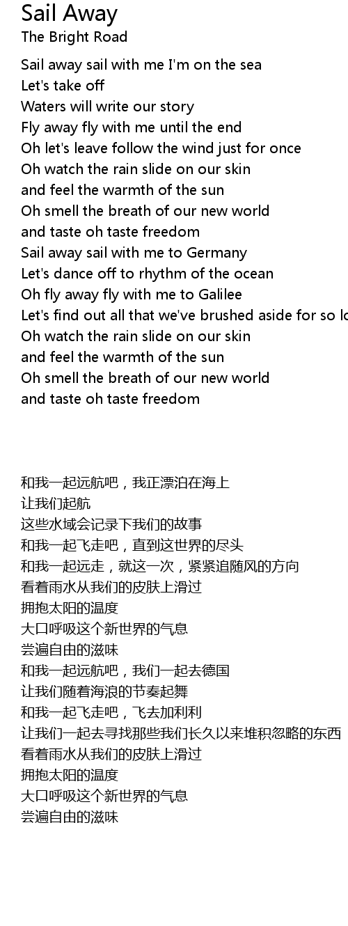 Sail away sail with me I'm on the sea |
