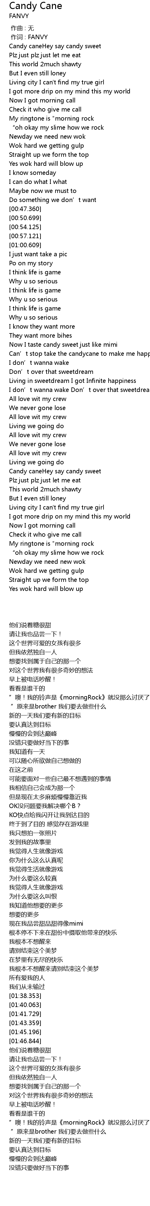 | [02:02.234] | Candy caneHey say candy sweet |