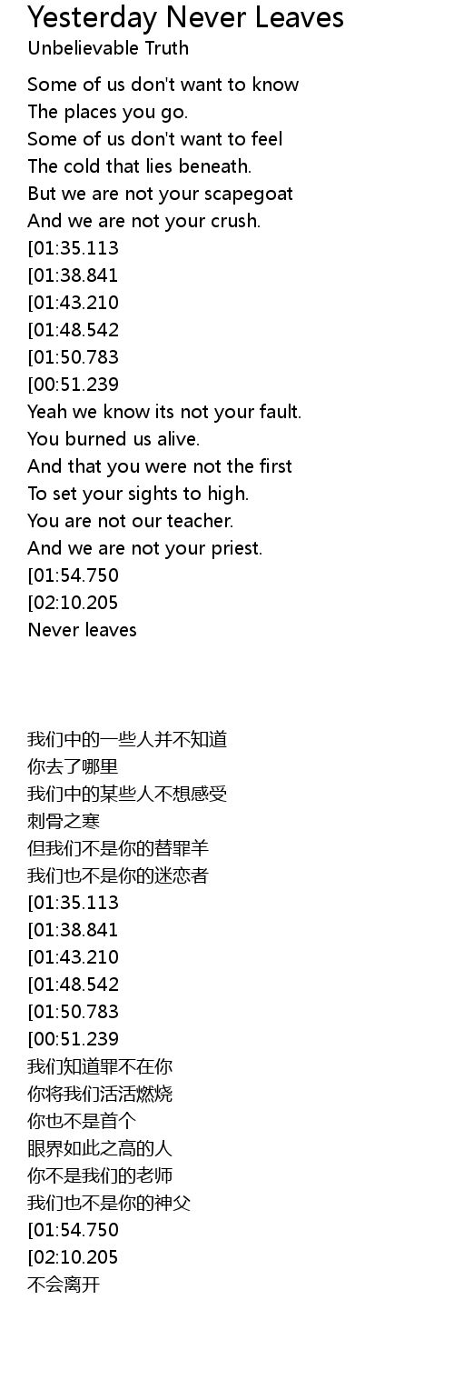 And yesterday never leaves |