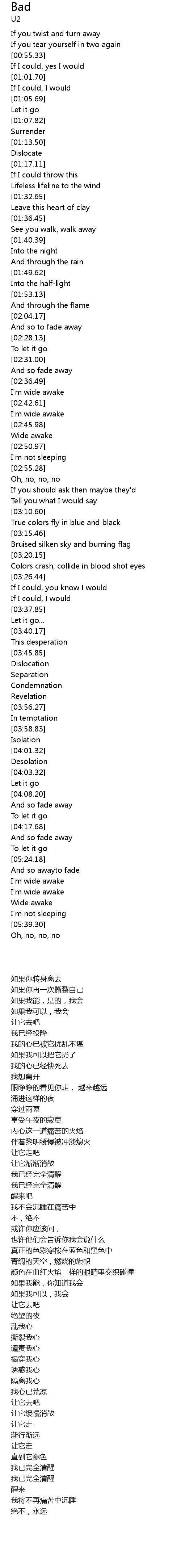 | [03:21.26] | Colors crash, collide in blood shot eyes |