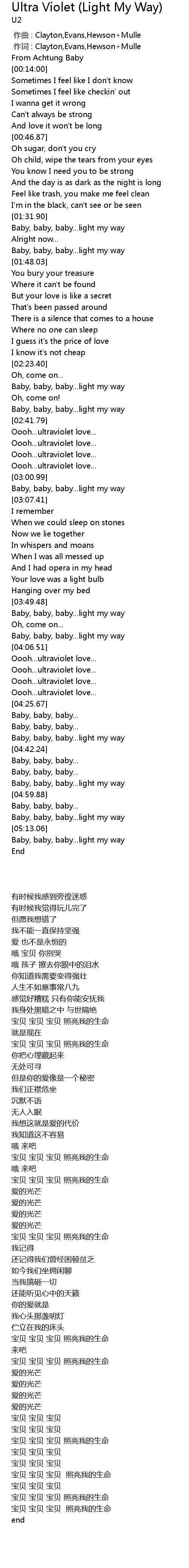 | [00:01.00] | 作词 : Clayton,Evans,Hewson+Mulle |
