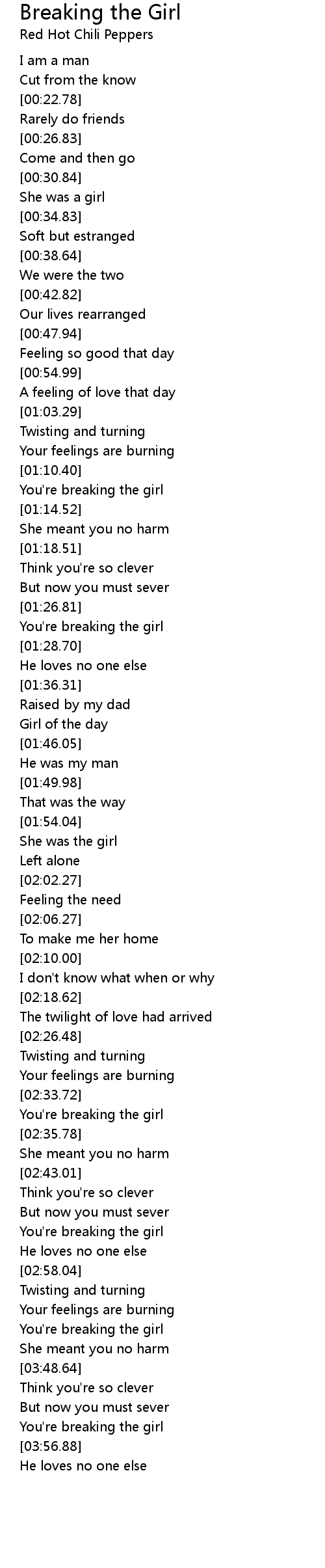 You're breaking the girl |