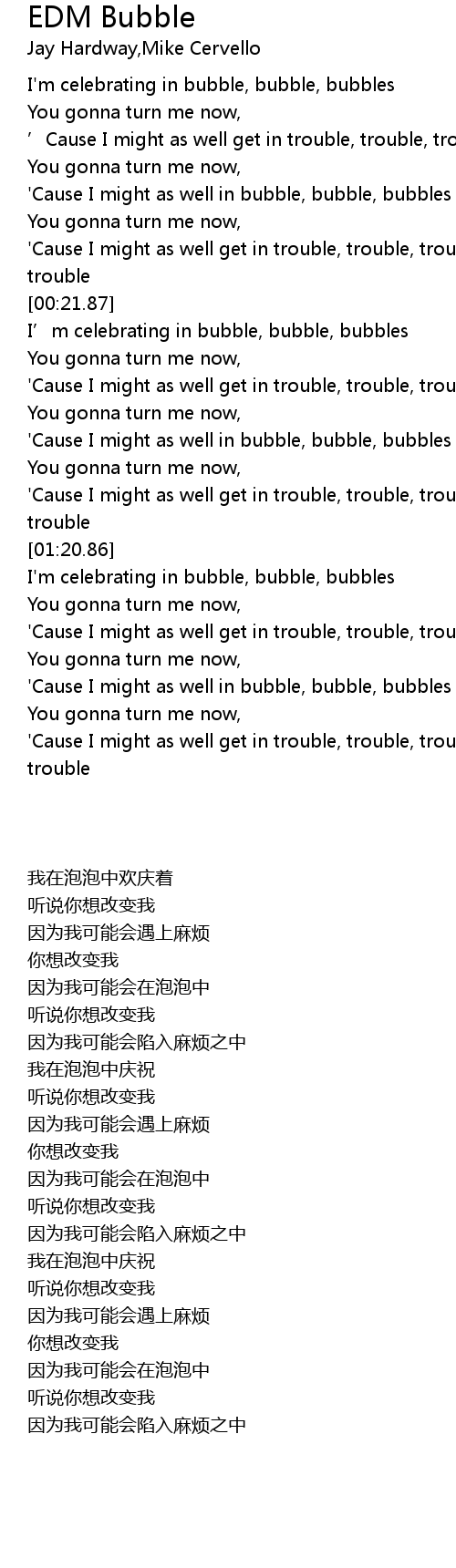 | [00:14.38] | ' Cause I might as well in bubble, bubble, bubbles |