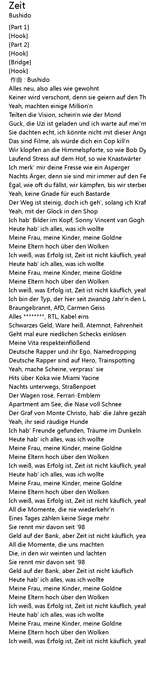| [02:21.57] | Geld auf der Bank, aber Zeit ist nicht k uflich, yeah |