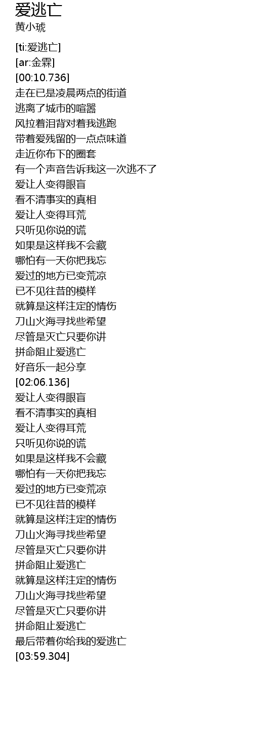 | [03:50.591] | 最后带着你给我的爱逃亡 |