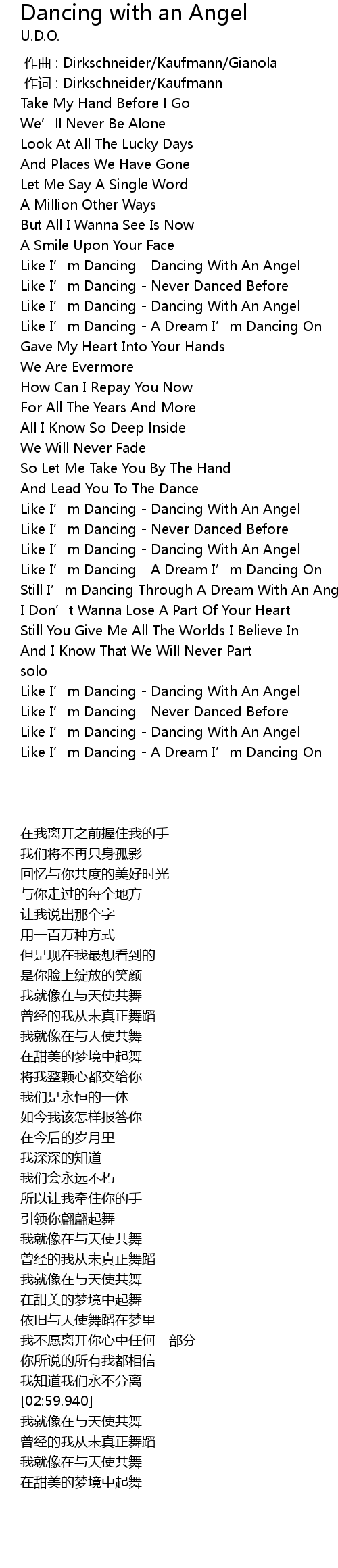 | [00:00.00] | 作曲 : Dirkschneider/Kaufmann/Gianola |