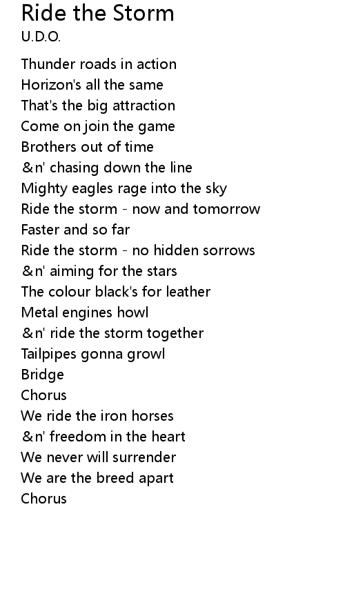 | Ride the storm no hidden sorrows | |