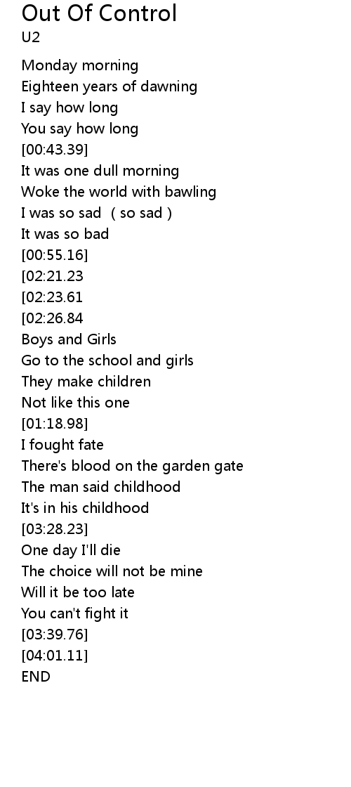 | [03:41.00][02:21.23][01:20.65][00:56.44] | I was of a feeling it was out of control |