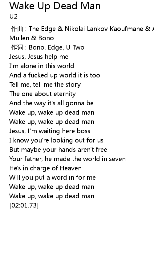 | [00:00.00] | zuo qu : The Edge Nikolai Lankov Kaoufmane Adam Clayton Larry Mullen Bono |