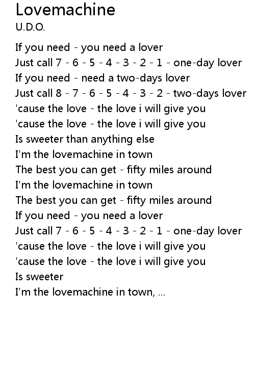 | Just call 8 - 7 - 6 - 5 - 4 - 3 - 2 - two-days lover | |