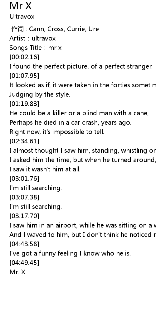 | [04:50.77] | Mr. X |