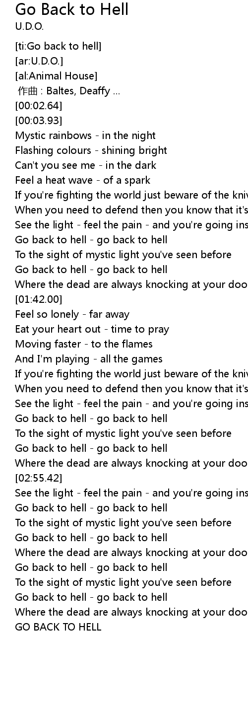 | [02:40.69] | Go back to hell - go back to hell |