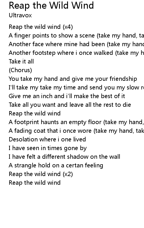 Reap the wild wind (x2) |