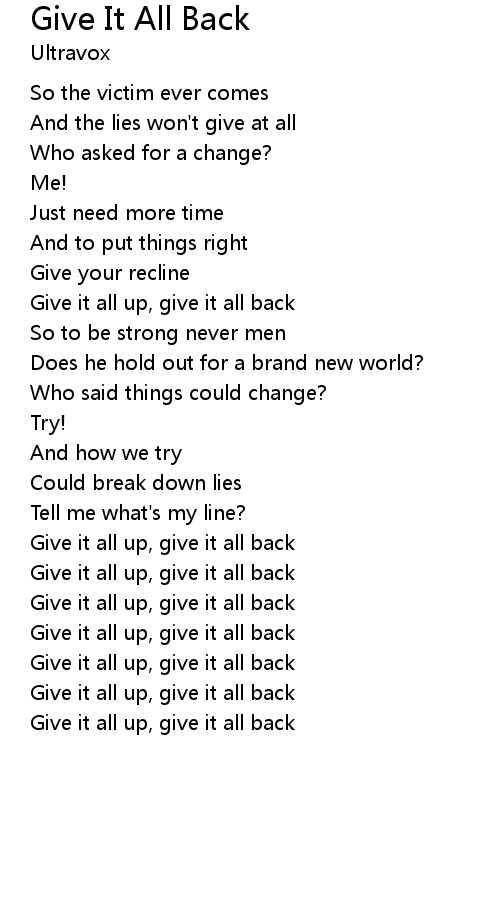 | Give it all up, give it all back |