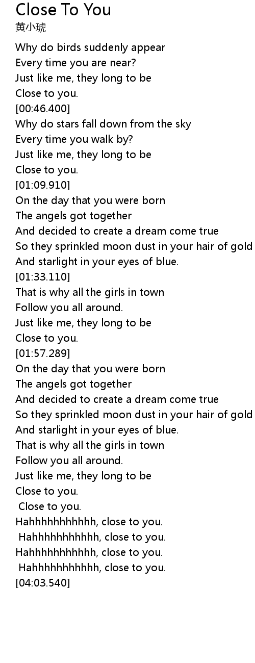 | [00:43.700] | Close to you. |