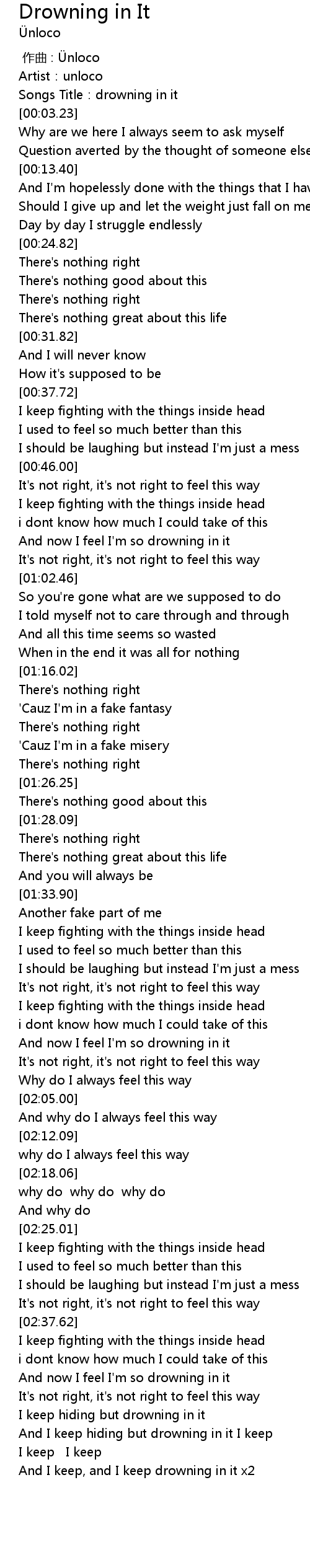 | [03:05.30] | And I keep, and I keep drowning in it x2 |