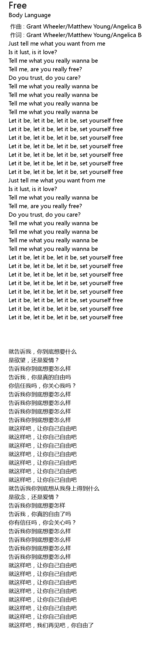 | [02:20.53] | Let it be, let it be, let it be, set yourself free |