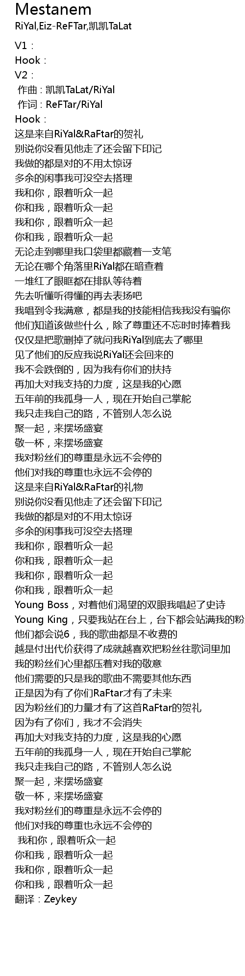 | [02:33.000] | yīn wèi fěn sī men de lì liàng cái yǒu le zhè shǒu RaFtar de hè lǐ |