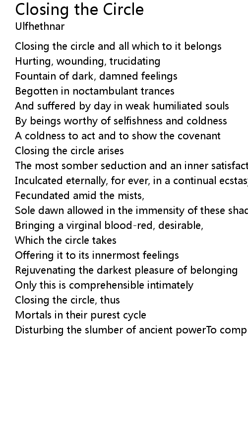 Closing the circle and all which to it belongs |
