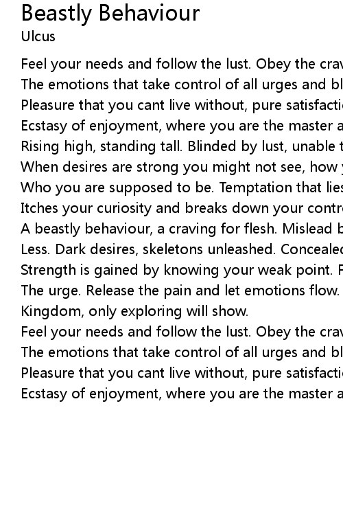 A beastly behaviour, a craving for flesh. Mislead by emotions no more or |
