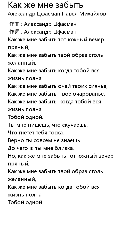 Как же мне забыть, когда тобой вся жизнь полна. |