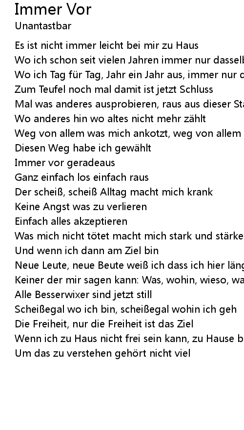 | Song | Immer Vor |