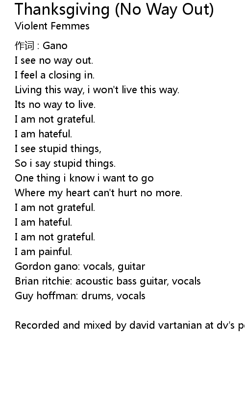 | Song | Thanksgiving (No Way Out) |