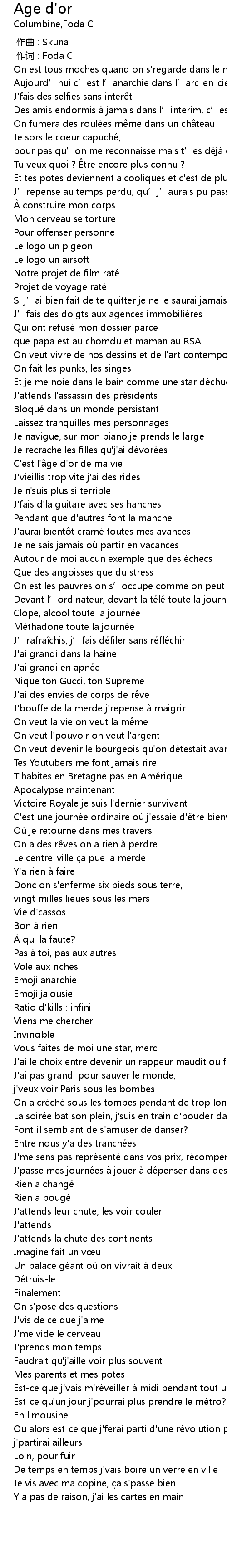 | [02:40.42] | On a cré ché sous les tombes pendant de trop longues anné es |
