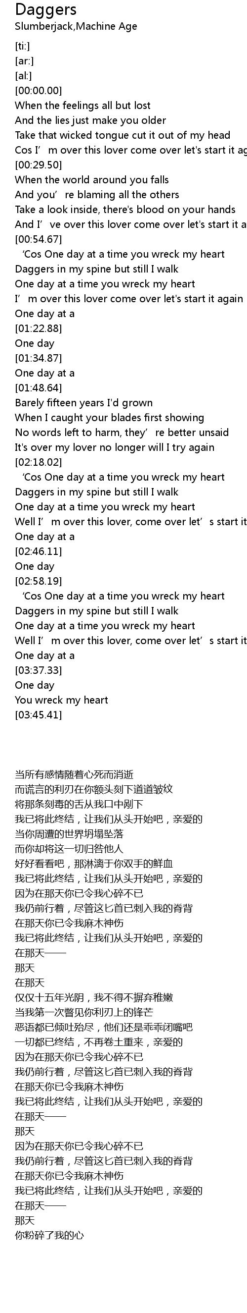 | [03:15.96] | Daggers in my spine but still I walk |