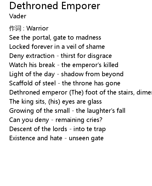 | Song | Dethroned Emporer |