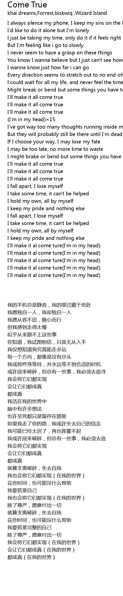 | [02:43] | I'll make it al come ture(I'm in my head) |