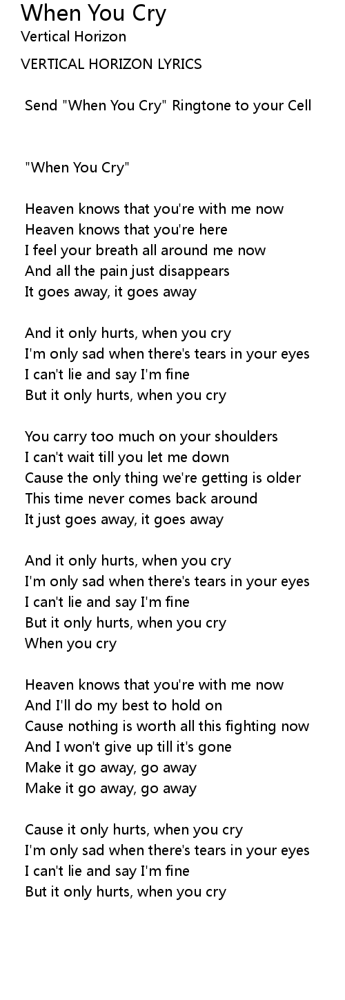 And it only hurts, when you cry |