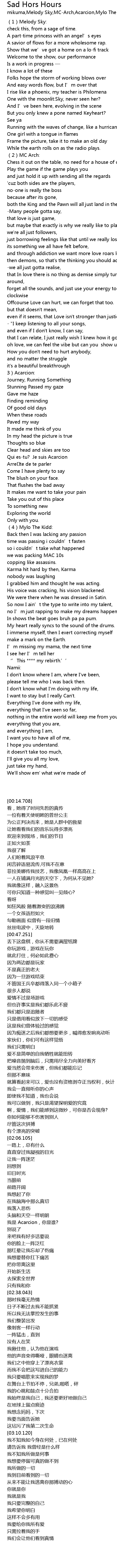 | [00:14.708] | 1 Melody Sky: |