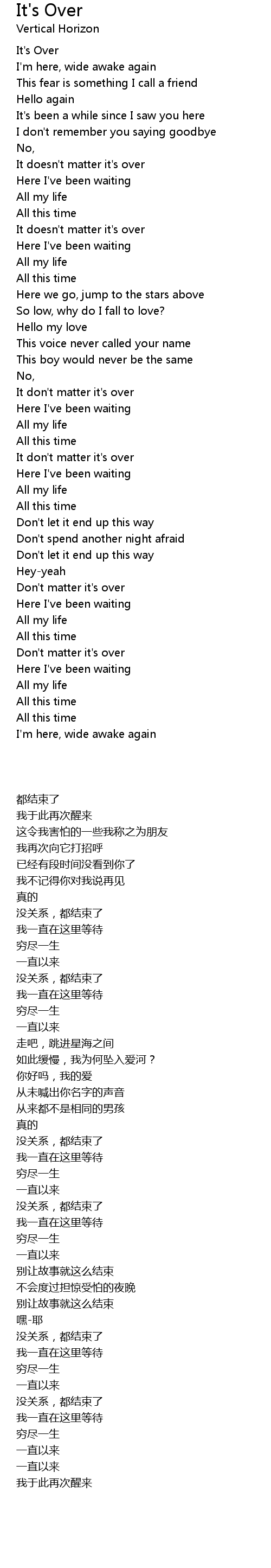It's Over Lyrics