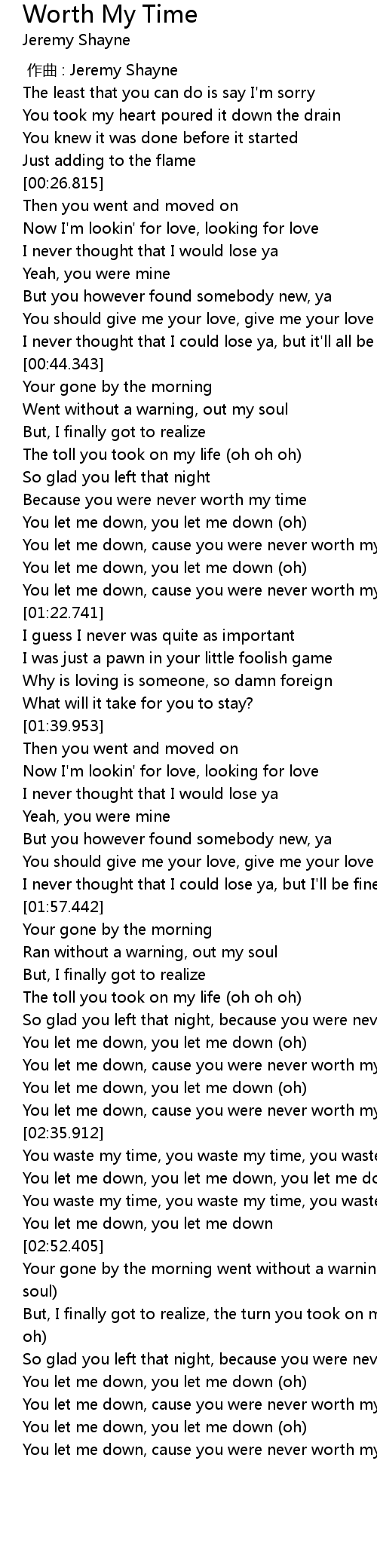 | [03:25.981] | You let me down, cause you were never worth my time |