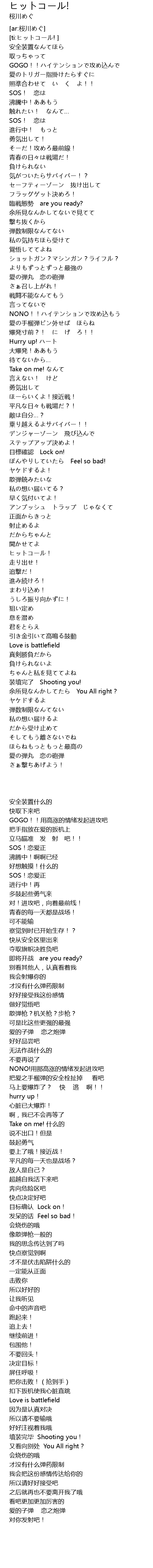 | [01:13.66] | 愛の弾丸 恋の砲弾 |