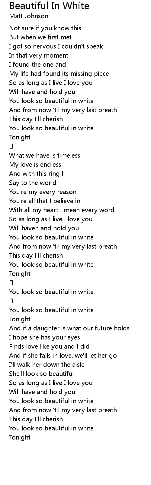 | Song | Beautiful In White |