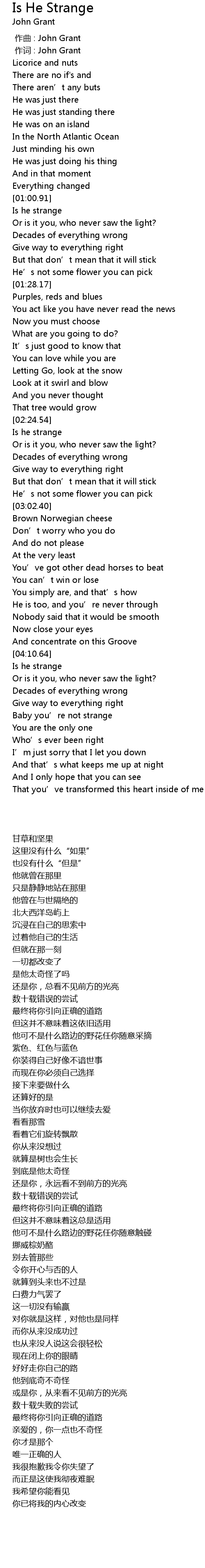 | [00:01.000] | zuò cí : John Grant |