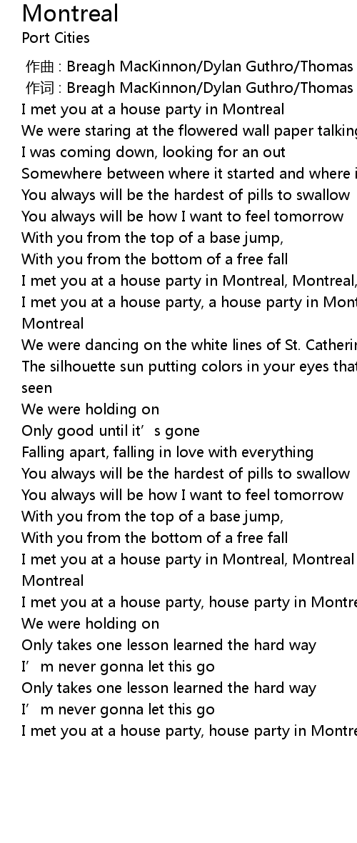 | [00:53.86] | I met you at a house party in Montreal, Montreal, Montreal |