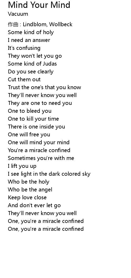 | One will mind your mind | |