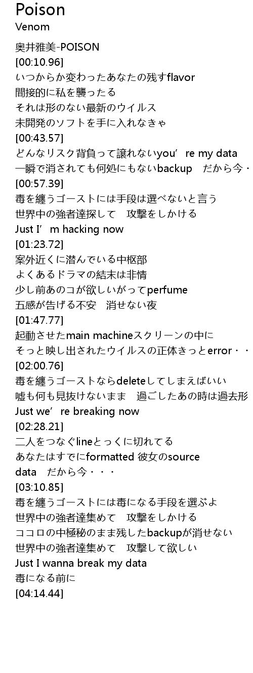 | [00:00.00] | 奥井雅美-POISON |