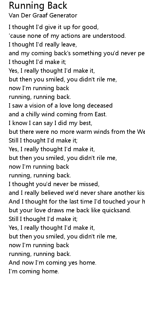 Running Back Lyrics